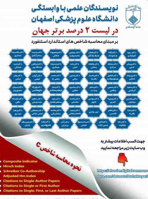 بر اساس تازهترین رتبهبندی جهانی دانشمندان که توسط دانشگاه استنفورد منتشر شده است، 5 نفر از اعضای هیئت علمی دانشکده بهداشت دانشگاه علوم پزشکی اصفهان در میان ۲ درصد دانشمندان برتر جهان در سال ۲۰۲۵ قرار گرفتهاند.