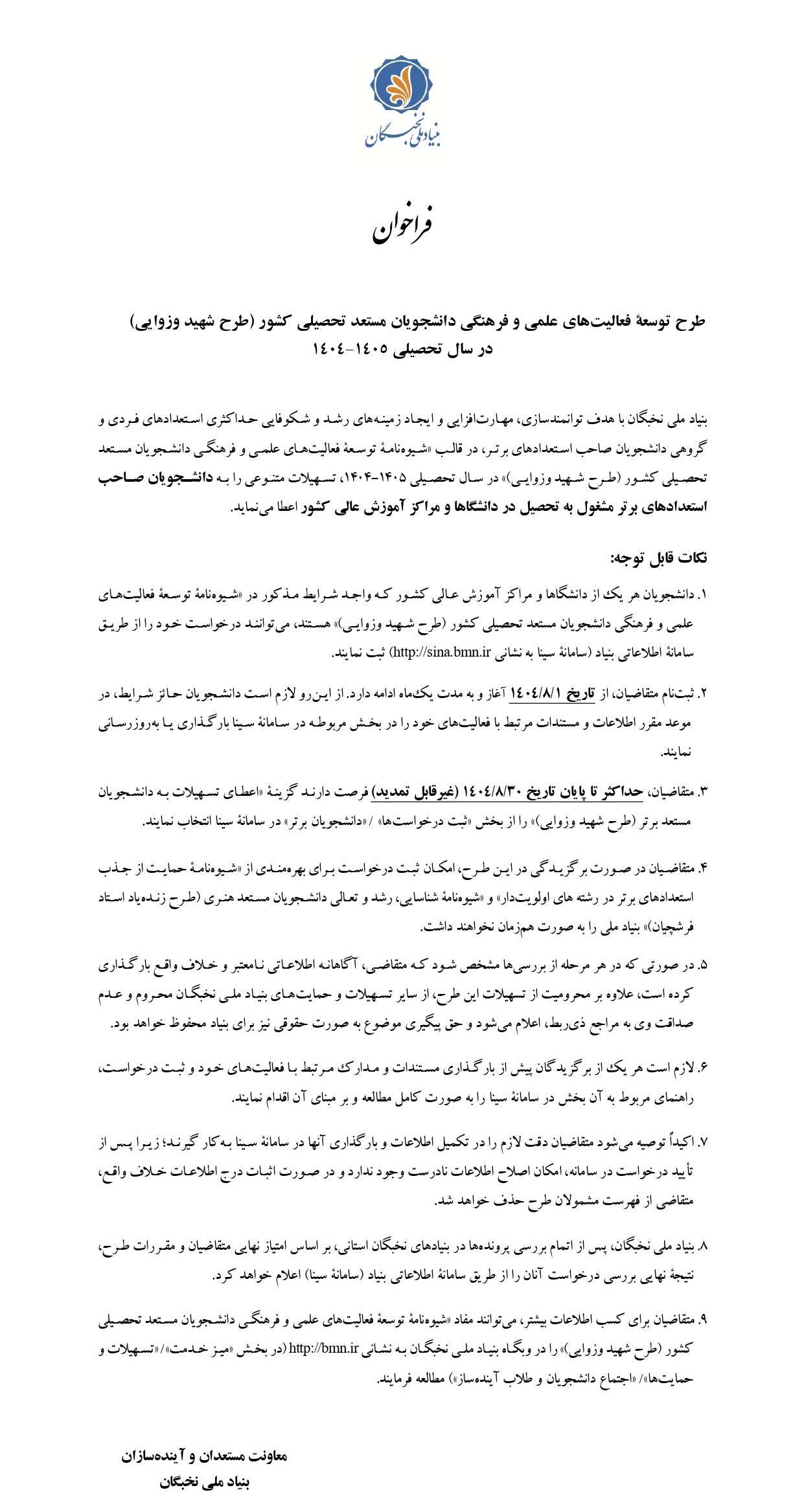 فراخوان طرح شهید وزوایی در سال تحصیلی ۱۴۰۴-۱۴۰۵
