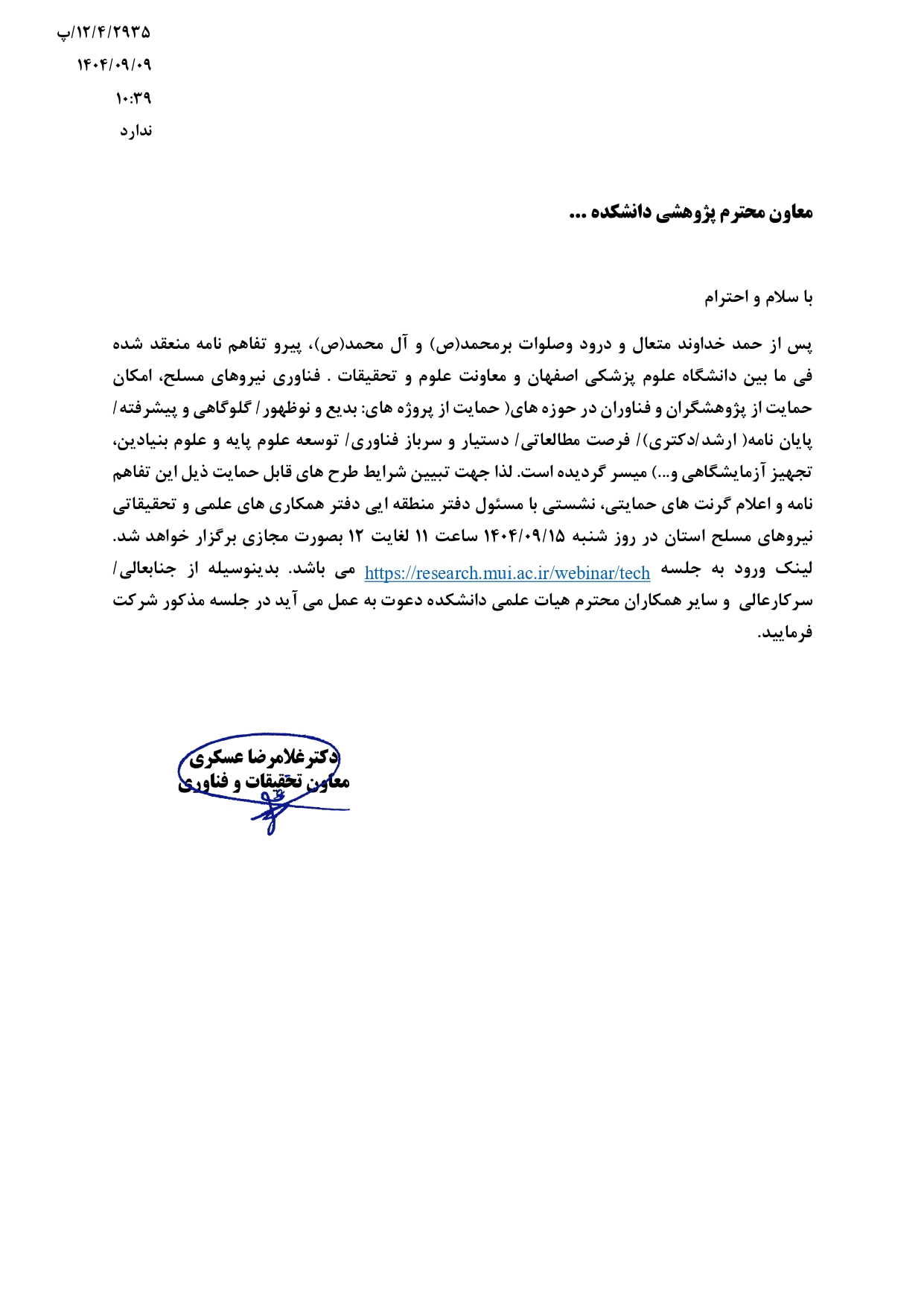 قابل توجه دانشجویان و اعضاء هیات علمی